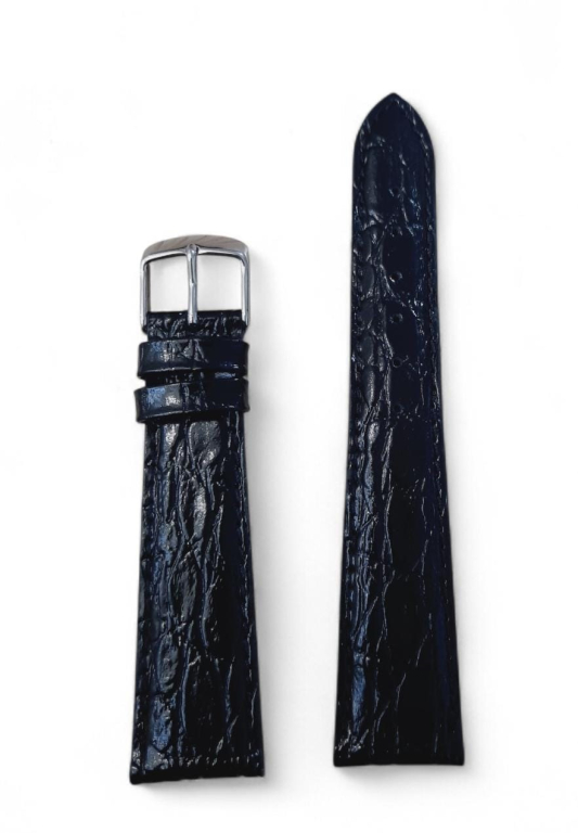 Cinturino in pelle Stampa cocco lucido punta a scalare col. BLU colori disponibili: blu, verde,gold,marrone, nero, bianco misure disponibili: mm. 14,16,18, 20, 22