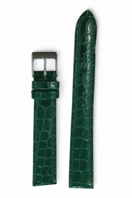 Cinturino in pelle Stampa cocco lucido punta a scalare col. Bianco colori disponibili: blu, verde,gold,marrone, nero, bianco misure disponibili: mm. 14,16, 22